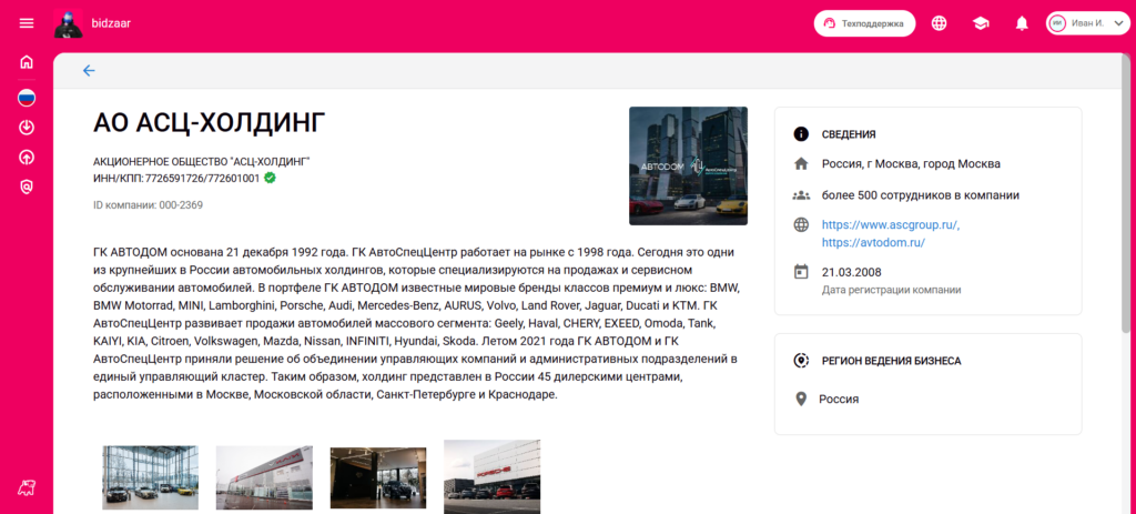Карточка компании на Bidzaar может использоваться как единая точка входа для поставщиков