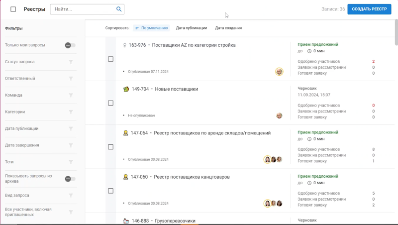 Ситидрайв не только перевёл на платформу своих прежних поставщиков, но и нашёл множество новых контрагентов. Сейчас примерно половина пула поставщиков найдена на Bidzaar.Bidzaar — не просто площадка, а целая экосистема для поиска подрядчиков. Когда вы публикуете закупку, платформа сама начинает работать на вас: