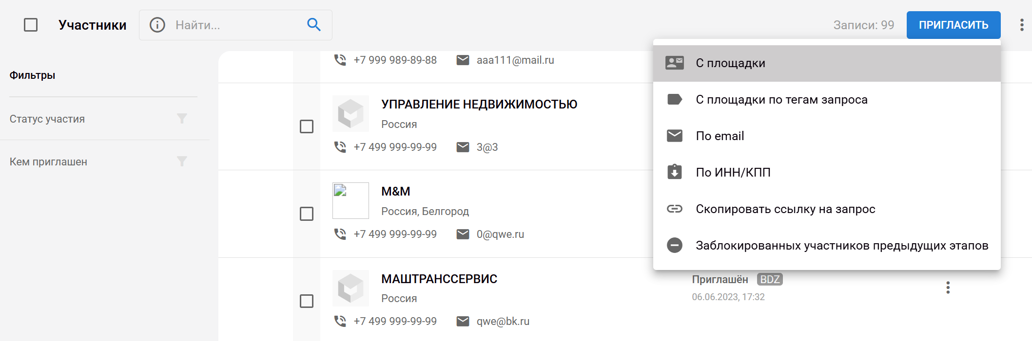 Алгоритмы платформы сами подбирают поставщиков по заданным параметрам и приглашают их к участию в закупке. Это экономит время и сразу увеличивает число релевантных предложений.