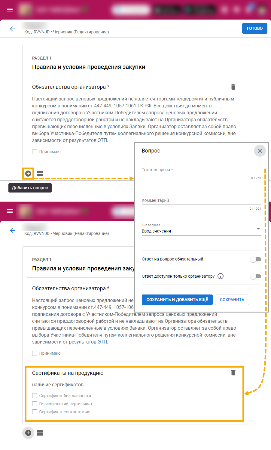 ❌ В запросе нельзя было выставить неценовые критерии оценки предложений: что участник в случае победы на торгах согласен с A, обязуется предоставить B, выполнить C, и т. д.